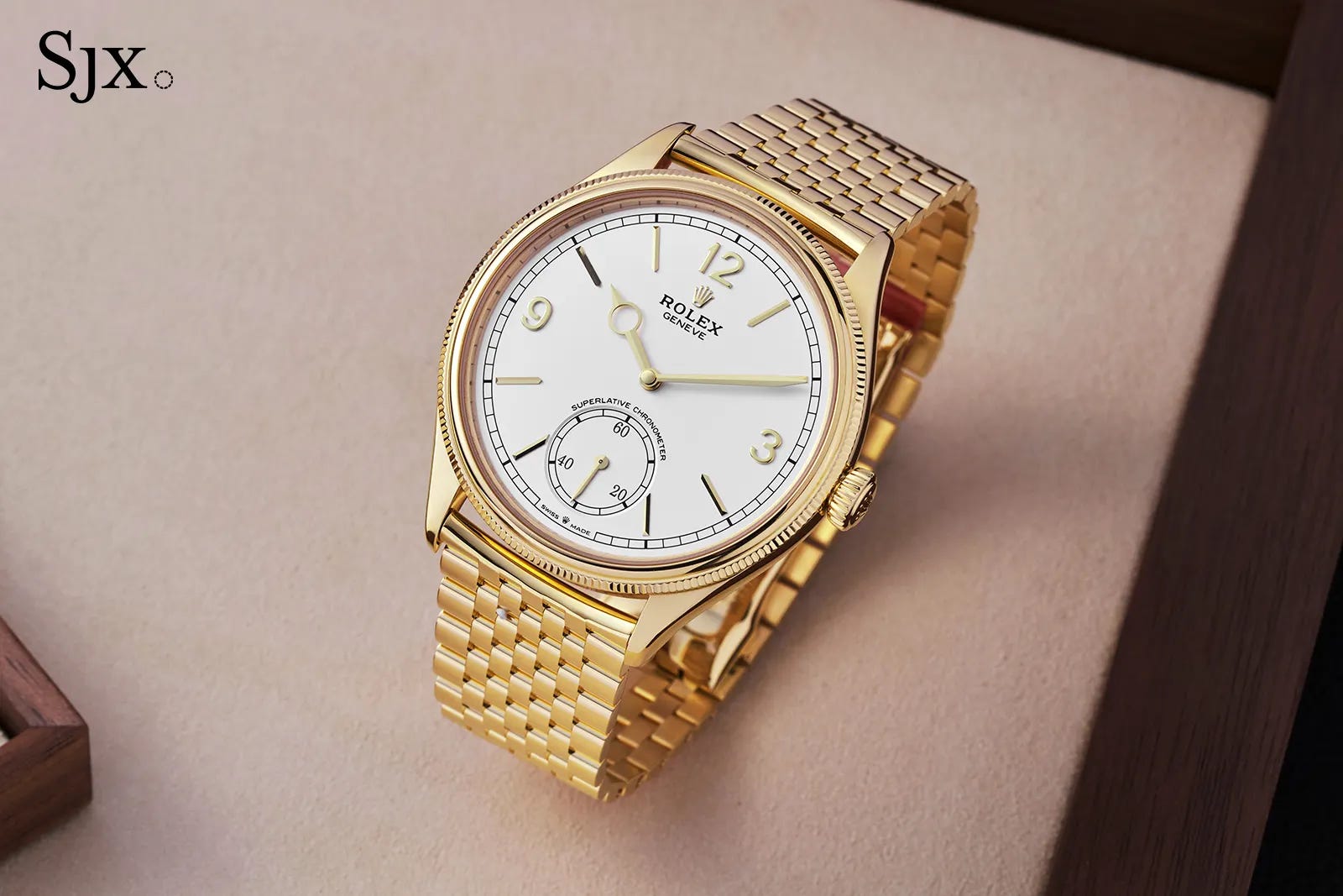 The yellow‑gold Perpetual 1908 Settimo introduces a seven‑link bracelet that blends vintage charm with modern comfort. At just 9.5 mm thick and powered by the cal. 7140, it balances elegance with Rolex’s industrial precision. A lacquered dial with crisp markers and sub‑seconds complements the sleek Oyster‑inspired case. Priced at $35,900, it offers a refined, contemporary take on the classic dress watch.