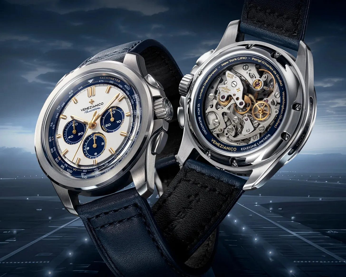 The Bucintoro 1976 pays homage to the Golden Age of aviation with a blue panda aesthetic and special markings tied to the Concorde. A restored Lemania 1873 powers the limited run, and a titanium plaque is made from original Concorde engine blades. Modern specs include sapphire crystals and 100 m of water resistance. Limited to 100 pieces at $5,495, it launches September 29, 2025.