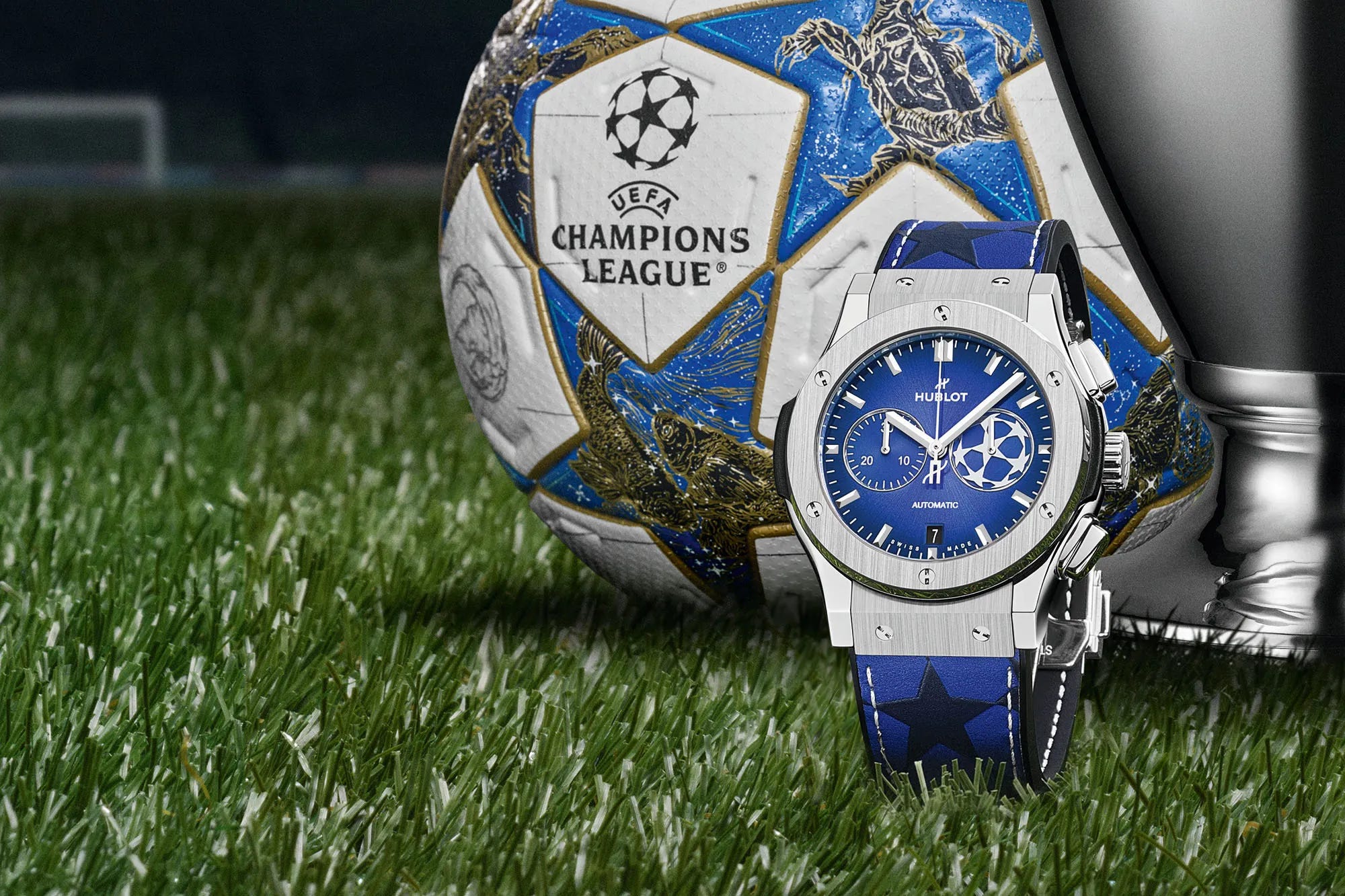 This 42 mm Classic Fusion Chronograph uses the HUB1153 automatic chrono (based on ETA 2892‑A2) and integrates the UEFA ball logo in the running seconds sub‑dial. The titanium case keeps it lightweight while the overall design feels sporty and playful. Priced at $14,400, it lands as a stylish, football‑themed release. The aesthetic suggests a simpler blue rubber strap could pair even better than the default.