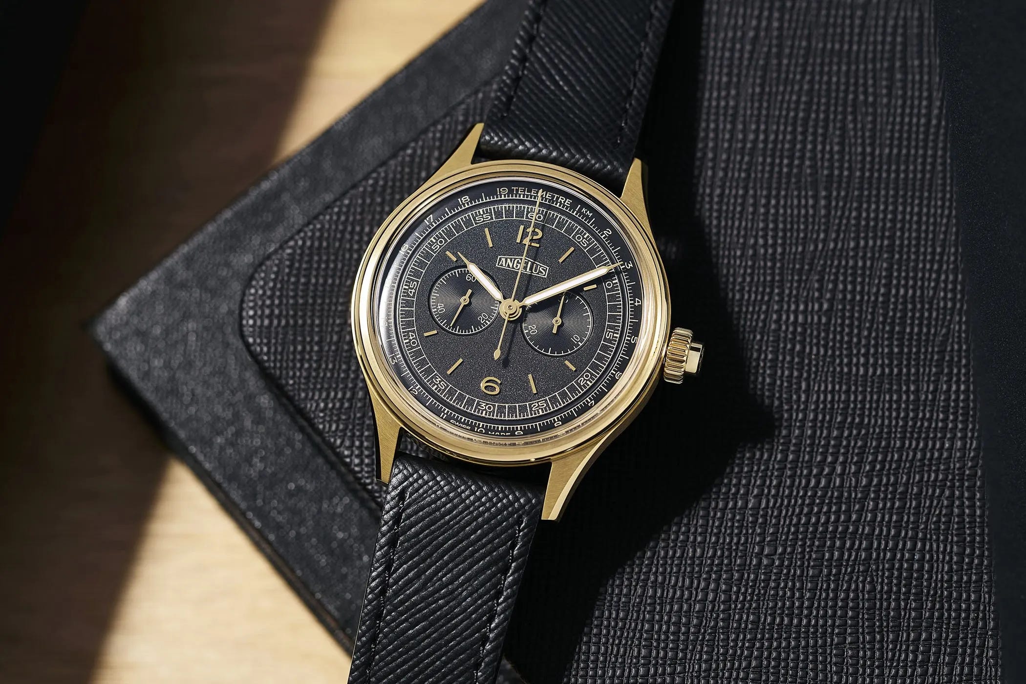 Introducing: The Angelus x Massena LAB Chronographe Télémètre in Yellow Gold