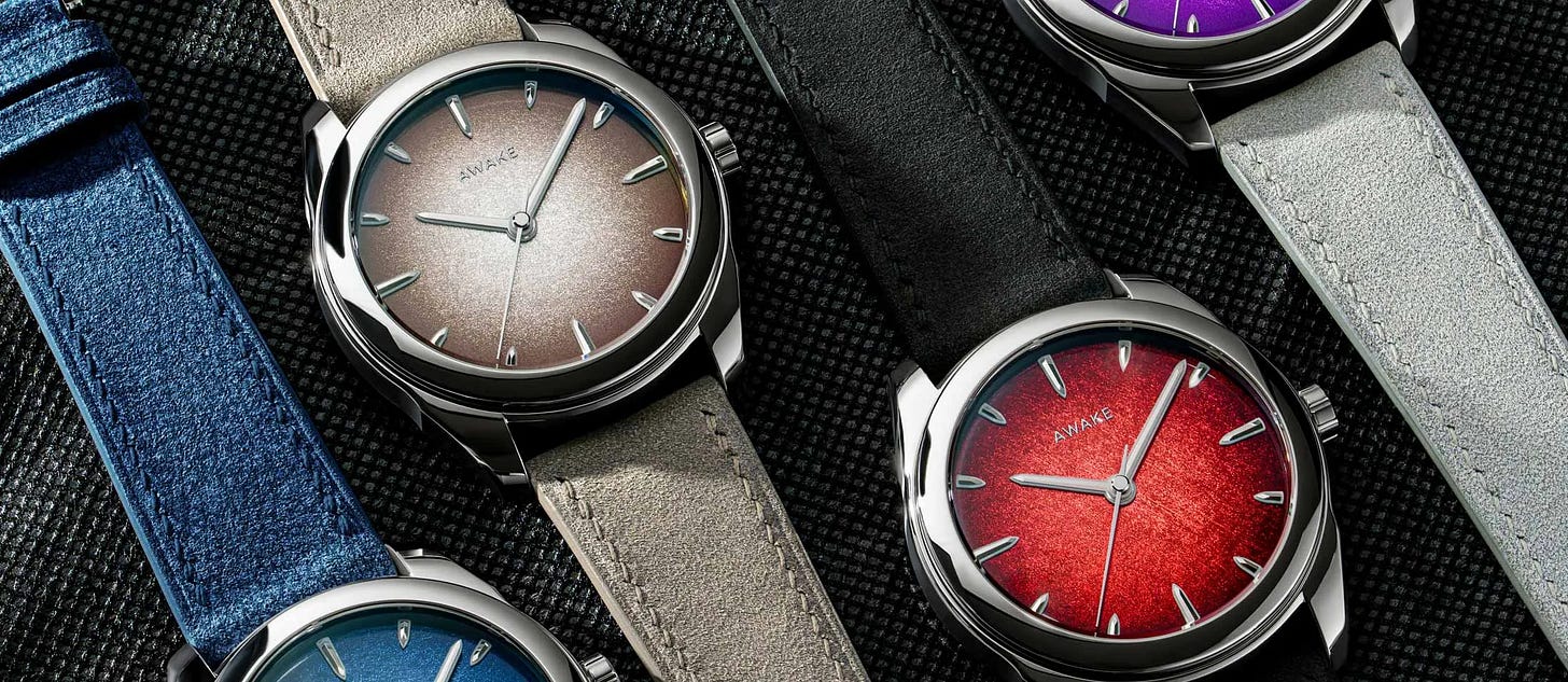 Awake’s five-piece Sơn Mài Silver Leaf Vignette series spotlights Hanoi master lacquerers and the centuries-old Vietnamese technique. Each dial blends lacquer with pure silver leaf, creating luminous textures that take more than ten hours per piece. The 39 mm recycled steel cases house La Joux‑Perret’s G101 automatic and add an innovative chiaroscuro-inspired glow. Priced at €2,000, the collection marries heritage craft with contemporary design.