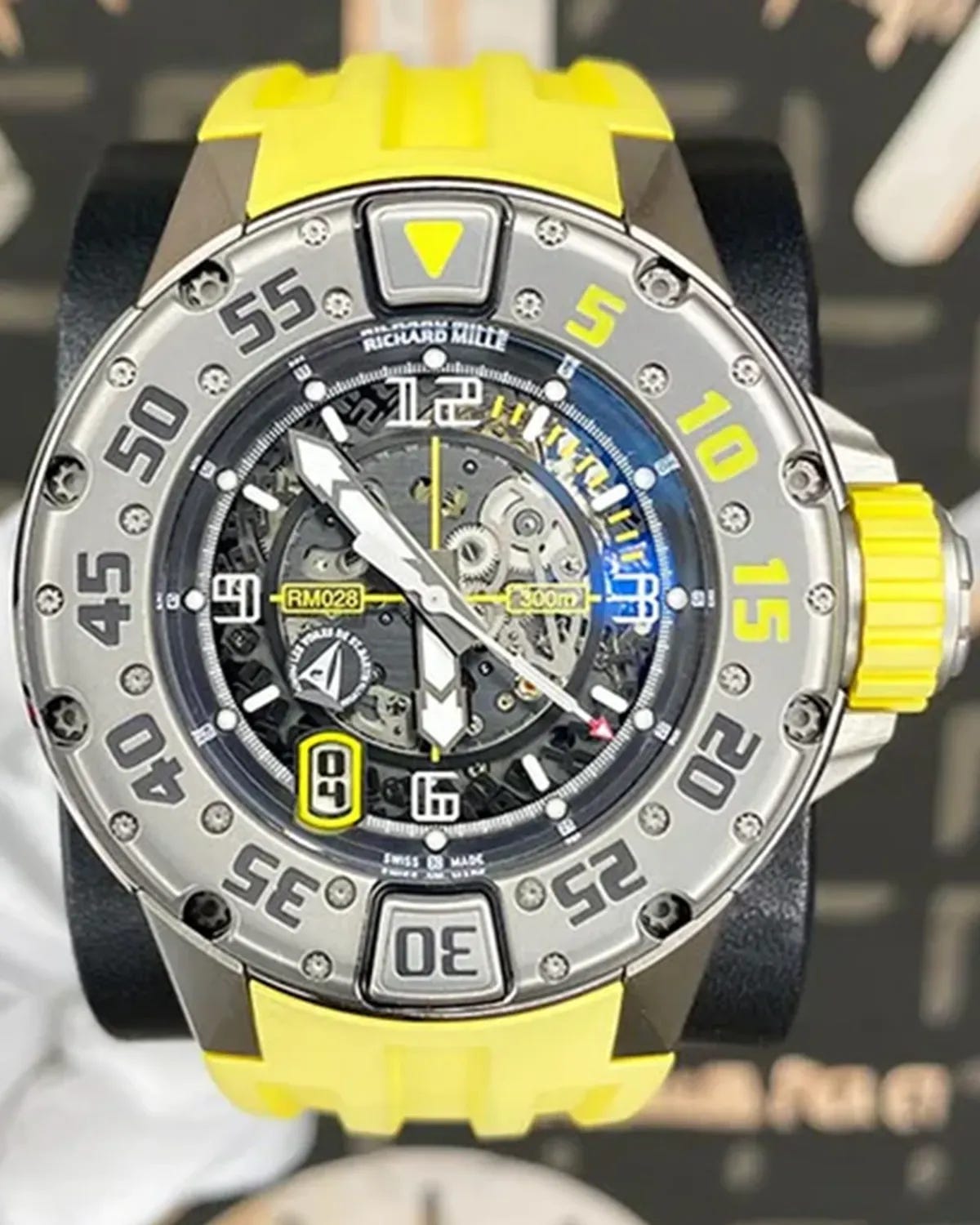 Given all that context, the current lot is very compelling: we have the full set (box and papers), the rare yellow strap variant tied to a specific sailing event, and a claimed very good condition state. From an auction perspective, the limited-edition nature should add a premium over similar non-special-edition RM 028s. On the flip side, the diver’s large 47 mm diameter may limit appeal to a subset of buyers, and condition (despite being described as very good) will always be key—micro-scratches, strap wear, bezel marks, or service history will impact value. In the hours leading up to auction close, bidders should verify authentication details (correct serial/edition number out of 100), confirm box/papers match the watch, inspect the strap condition (since rubber can degrade), and ideally review service history (for water-resistance assurance given dive orientation).