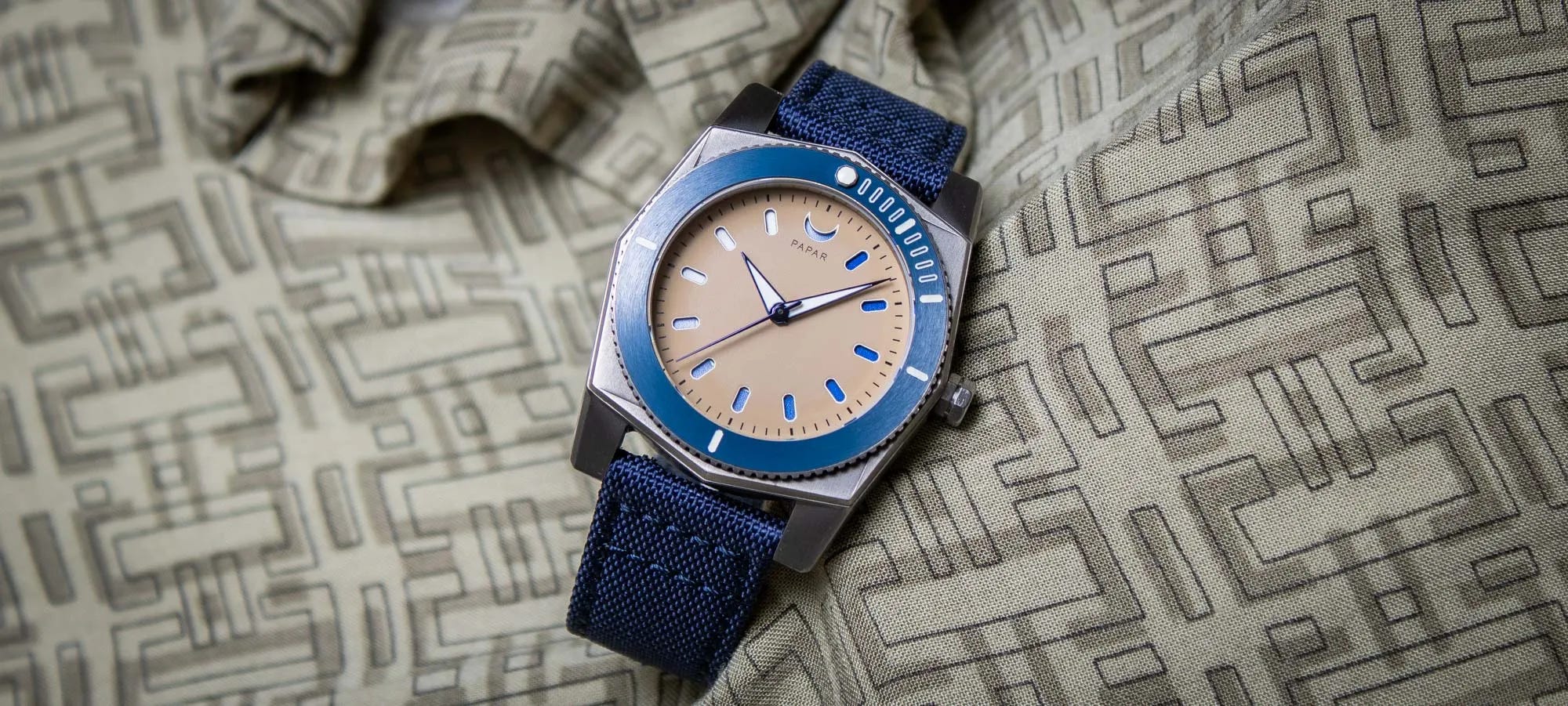 Papar’s titanium dive watch leans into playful design without losing practicality, adding whimsical color-changing hour markers to a clean 40mm, 10.9mm-thick case. Available in sand-dial titanium or rose gold PVD over black, it wears light and comfortable while keeping a cohesive aesthetic. The Miyota 9015 automatic delivers dependable performance, and water resistance is rated to 200m. At $995, it’s a distinctive alternative for collectors who prize creativity.