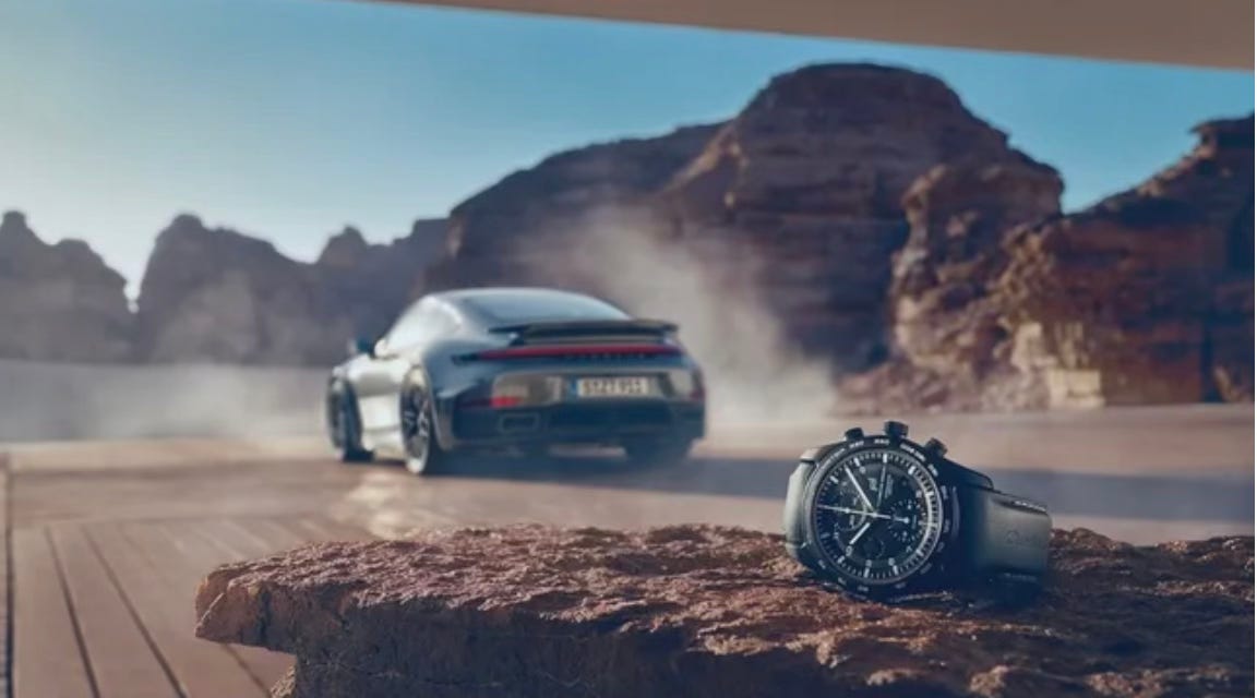 Echoing the 911 Turbo S, this made-to-order chronograph features a titanium case with black titanium carbide coating and a COSC-certified flyback movement. Owners can customize colors to match their Turbo S, aligning car and watch aesthetics. A high-contrast black dial and tachymeter scale emphasize legibility and speed measurement. Starting at $11,292, it brings Porsche personalization to the wrist.