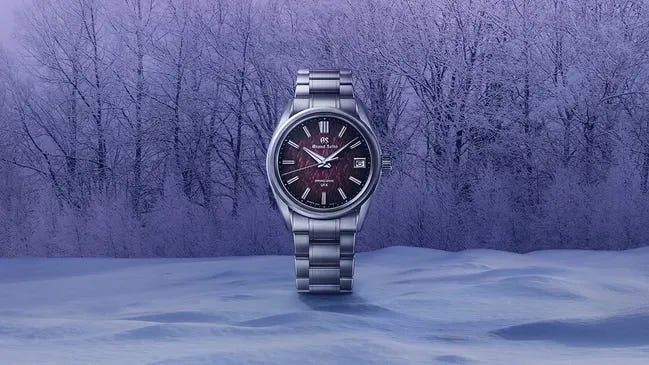Limited to 1,300 pieces, this 37 mm Ever‑Brilliant Steel model features the ultra‑precise Spring Drive Caliber 9RB2 at ±20 seconds per year. Water‑resistant to 10 bar and anti‑magnetic to 4,800 A/m, it’s built for durability. The dial gradients from deep violet to icy tones, evoking a winter sunrise. Priced at $11,100, it showcases Grand Seiko’s union of technical mastery and dial artistry.