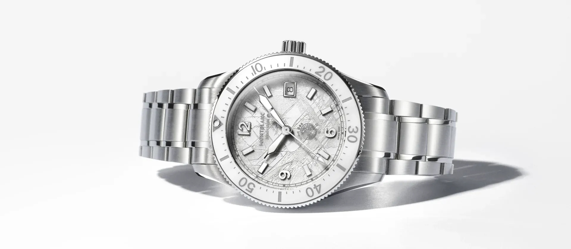 This compact 38 mm diver extends Montblanc’s Iced Sea line with a glacier‑textured dial created via the traditional gratté‑boisé technique. The oxygen‑free case interior helps prevent oxidation and fogging, while 300 m water resistance readies it for real‑world diving. It’s powered by the MB 24.17 automatic and offered on an interchangeable steel bracelet or rubber strap. The result is a unisex tool watch that balances rugged performance with refined detailing.